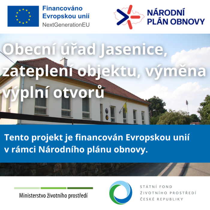 Obecní úřad Jasenice, zateplení objektu, výměna výplní otvorů, reg. č. 5211200286